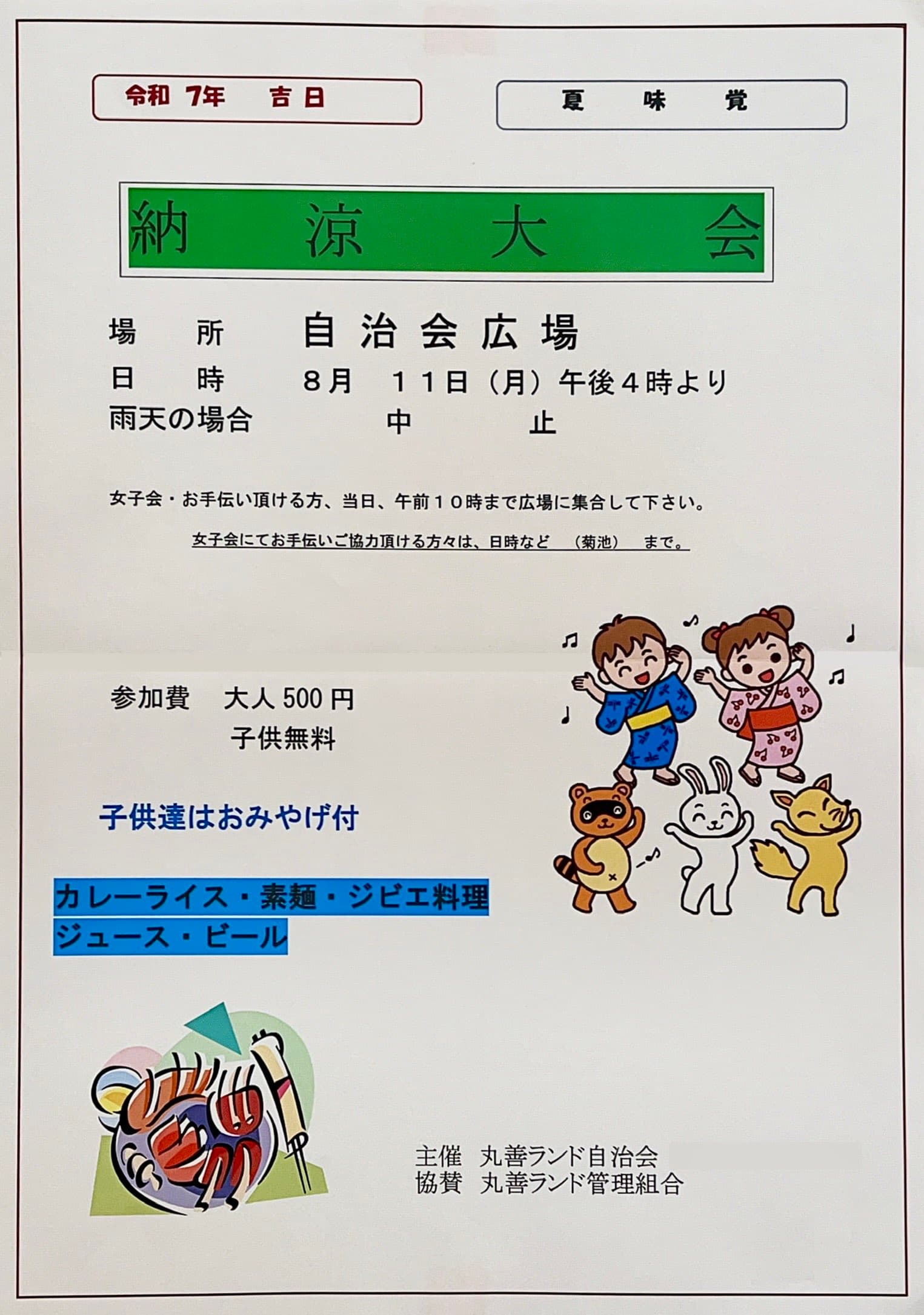 丸善ランドでは、毎年恒例の「納涼祭」を下記の通り開催いたします。